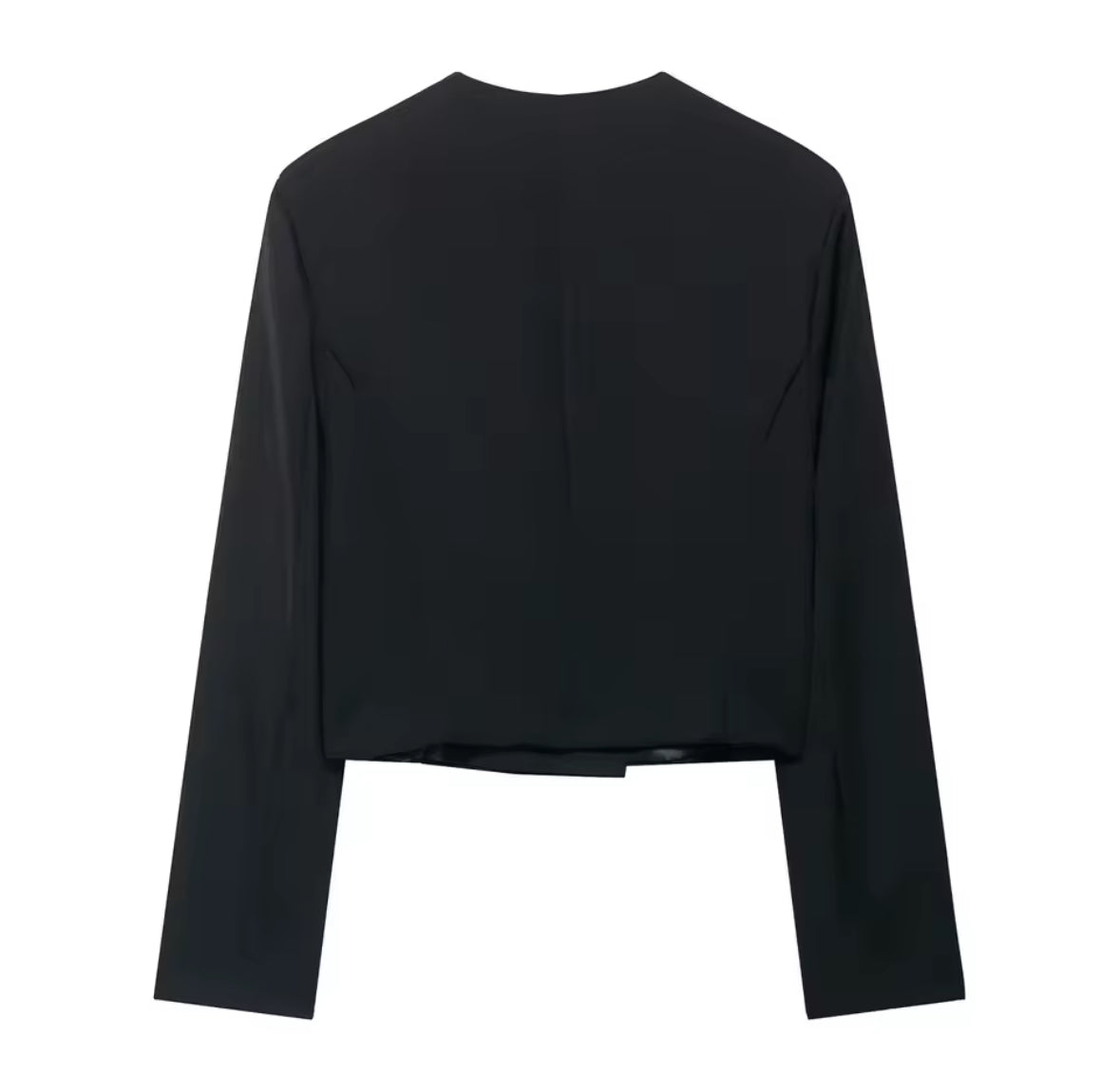 Blazers lisos de manga larga con cuello redondo y doble botonadura para mujer, chaqueta corta ajustada con botones de Metal para oficina