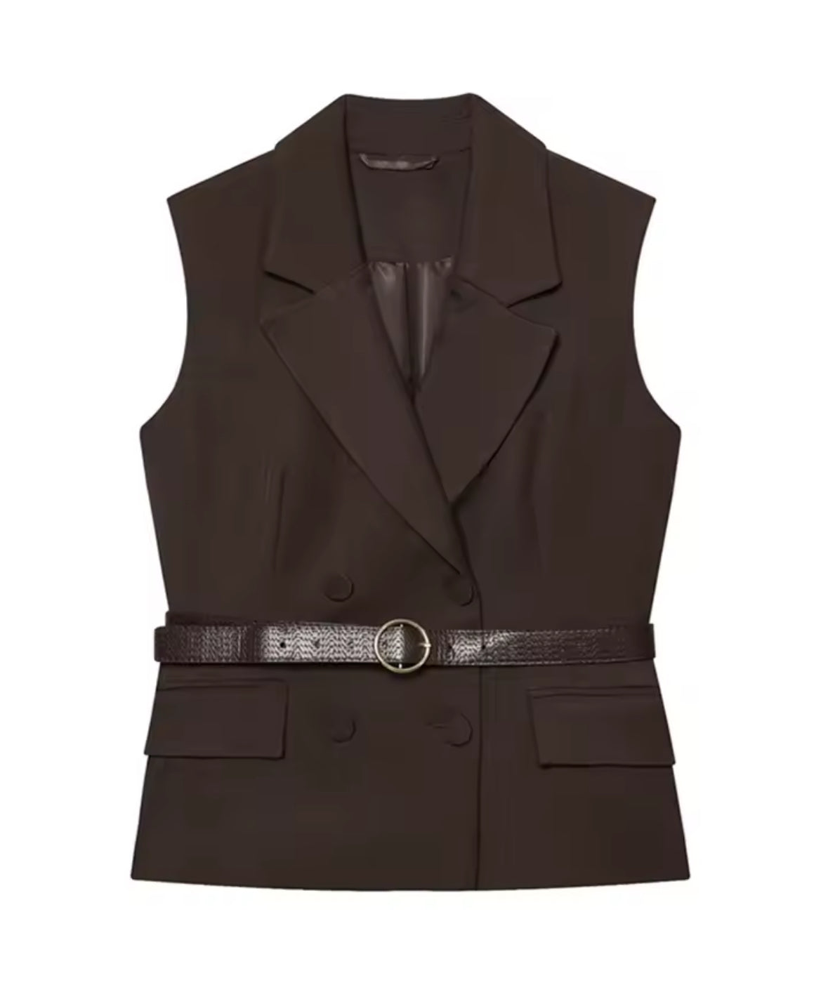 chaleco solapa cuello sin mangas bolsillos delanteros